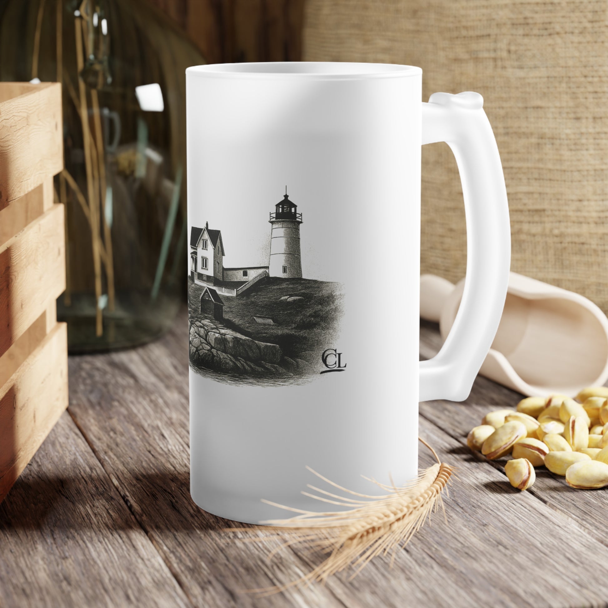 This frosted glass beer mug carries the calm, windswept spirit of a coastal lighthouse—vivid illustration wrapping the pint like a shoreline memory. The frosted finish softens the colors and adds a tactile, cool-to-the-touch surface that feels right in hand after a long walk on salt-streaked rocks. Lift it during evening gatherings to evoke gull cries and the steady beam of the Nubble Lighthouse; it’s the kind of glass that turns an ordinary pour into a small coastal ritual. Built for everyday use, the glass holds 16 oz and stands up to both dishwasher and microwave, so it moves easily from lazy mornings with soup to night-time beers by the window. For anyone who collects seaside keepsakes or wants a reminder of foghorn evenings, this mug slips naturally into daily life—practical, durable, and quietly evocative.