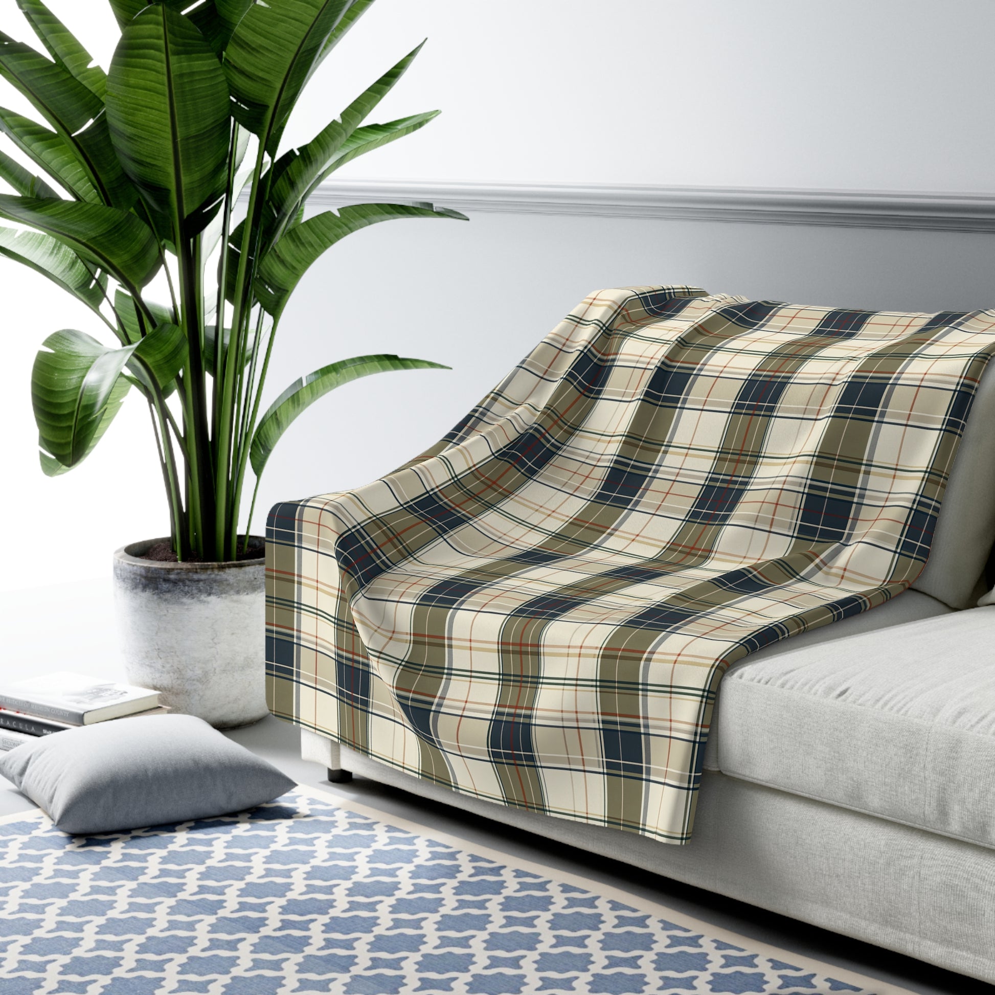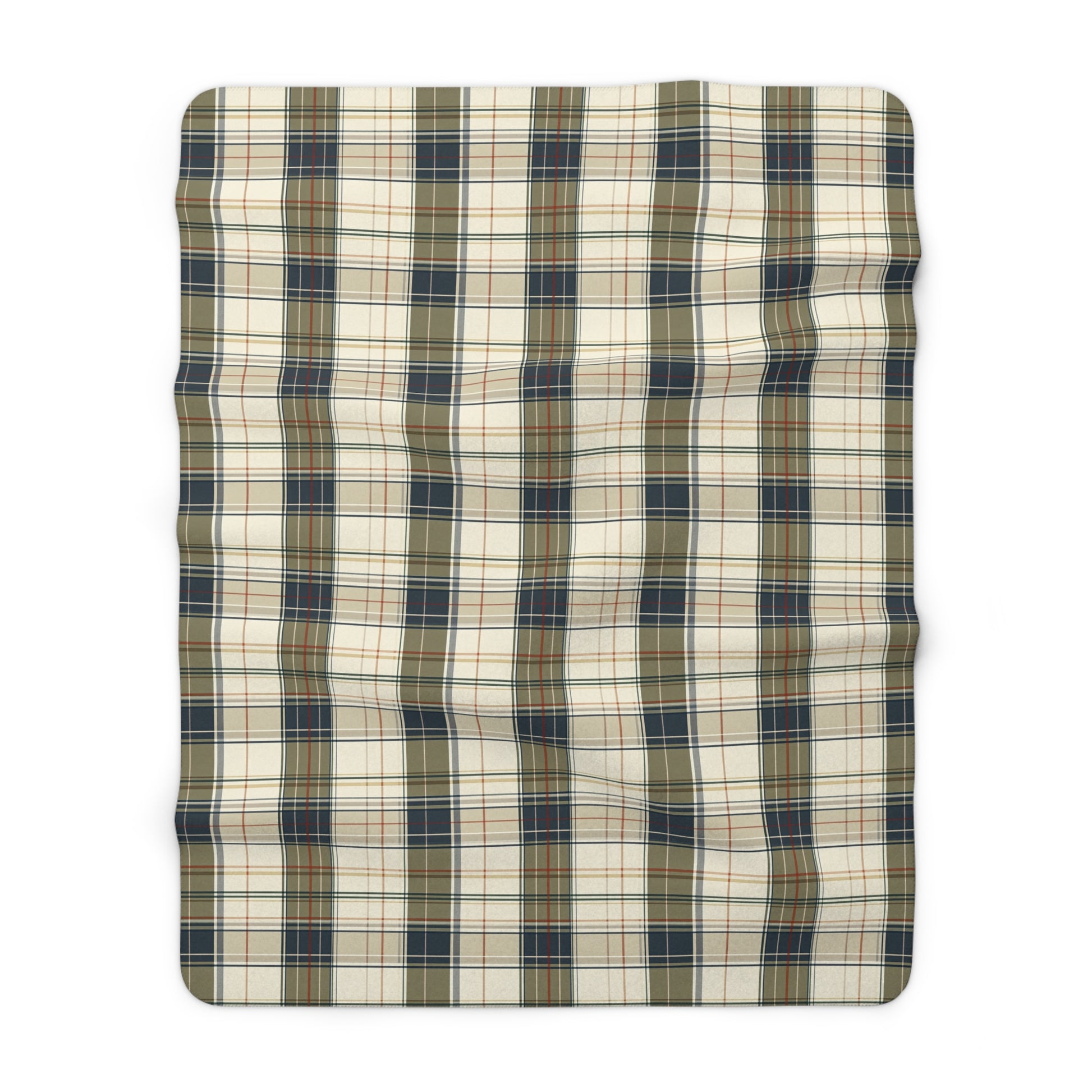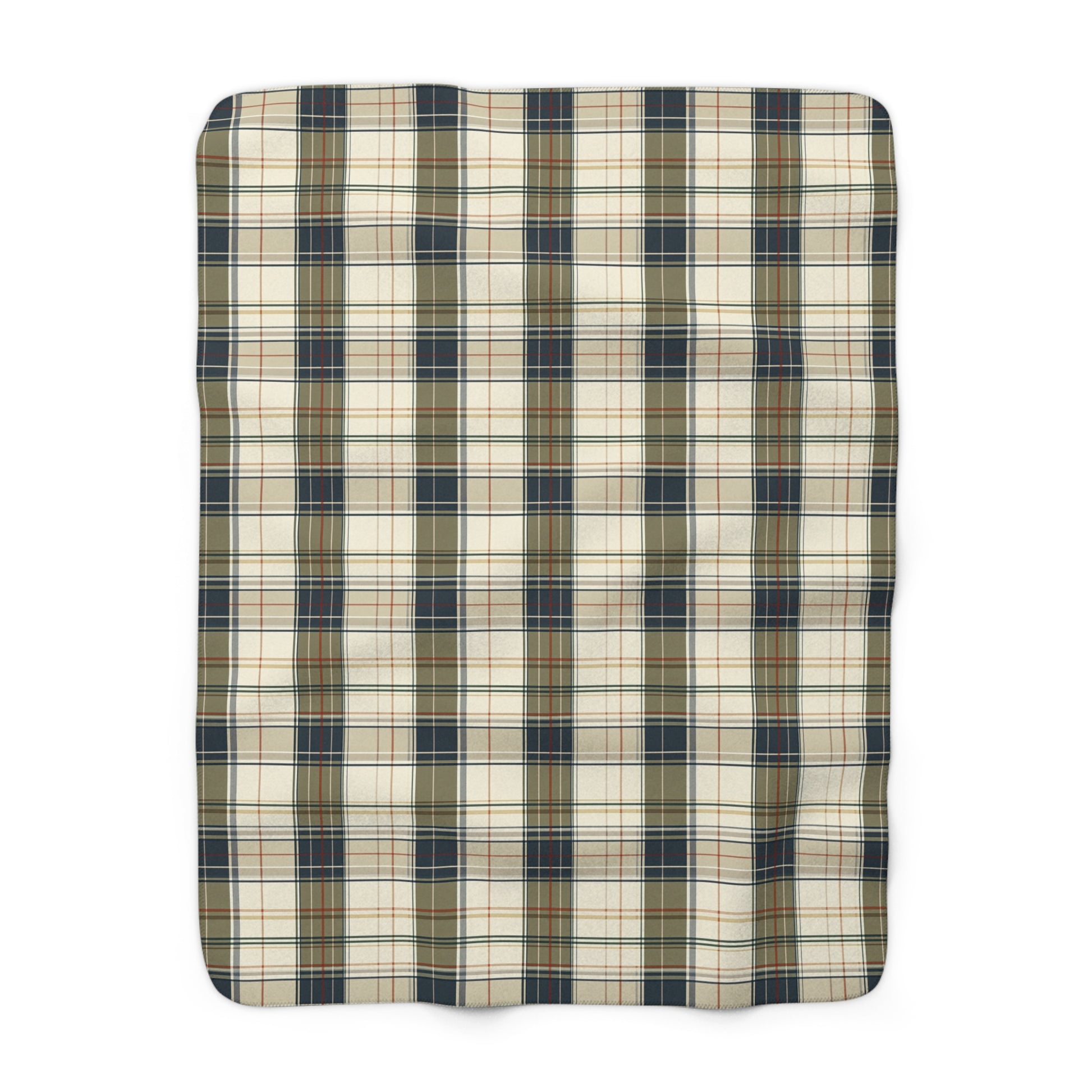 Cozy Plaid Sherpa Blanket – Cream, Navy & Olive Fleece Throw