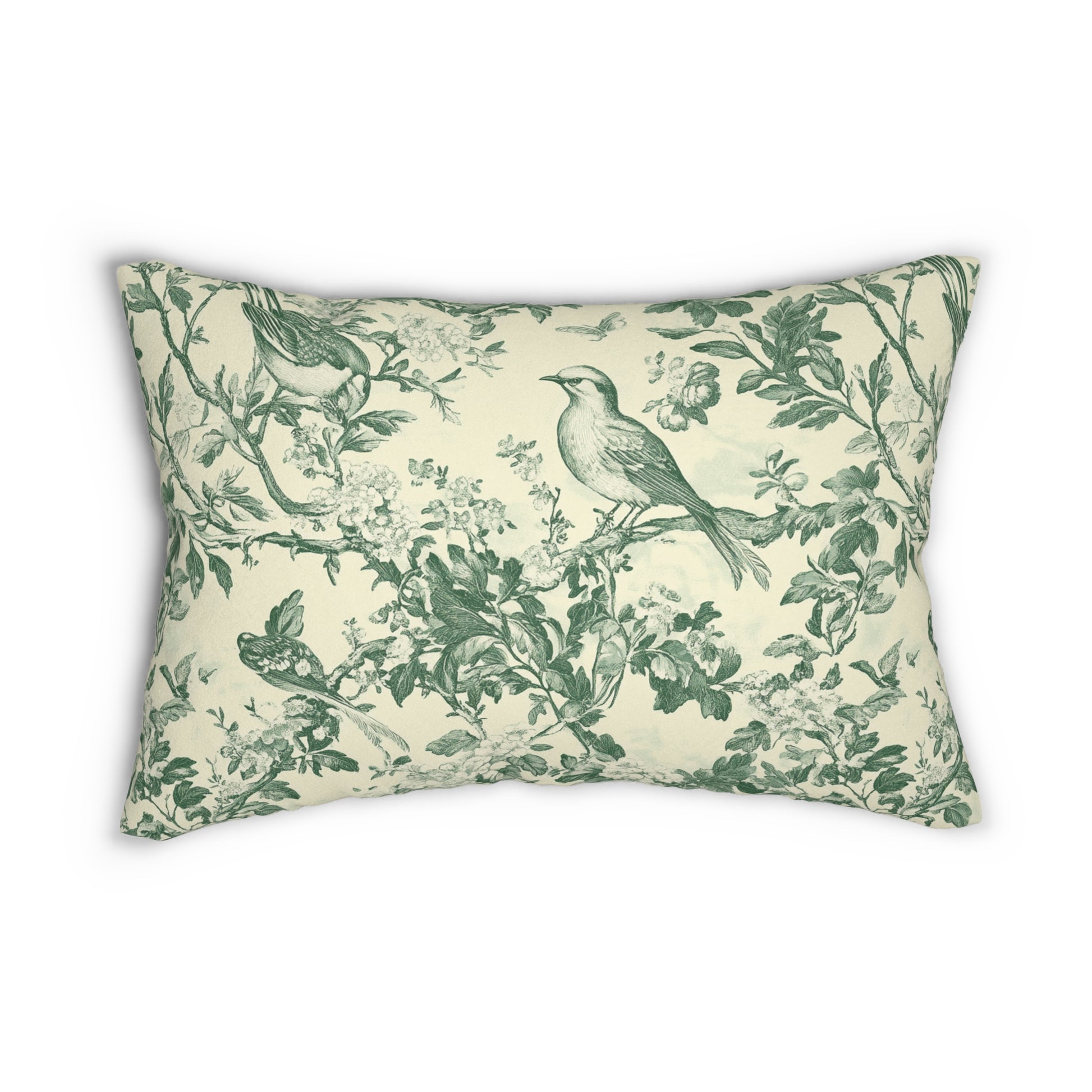 Toile Bird Lumbar Pillow — Green Botanical Throw Pillow